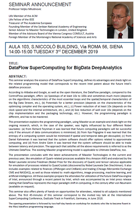 [Info-area1] Fwd: SEMINAR ANNOUNCEMENT (new schedule): DataFlow SuperComputing for BigData DeepAnalytics