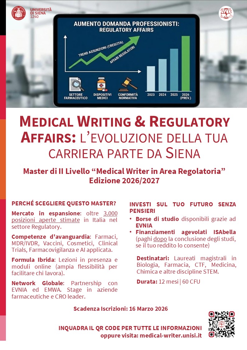 segnaliamo che sono aperte le iscrizioni al Master di II livello in Medical