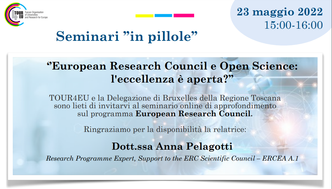[Info-tecnici-ricerca] TOUR4EU incontra...Open science and ERC - Dott.ssa Anna Pelagotti, 23 maggio ore 15 - Invito per 14 ricercatori UNISI