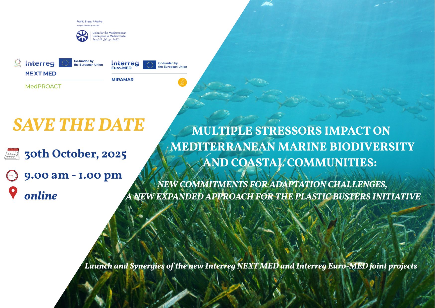 [Info-tecnici-ricerca] Evento del 30/10/2025 a Barcellona, con possibilità di collegarsi da remoto, su: Multiple stressors impact on Mediterranean marine biodiversity and coastal communities.